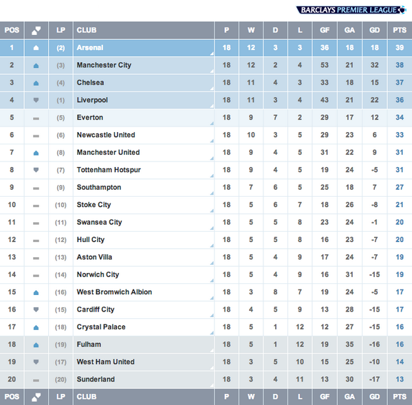 Premier league table, standings, latest fixtures, results: premier league table arsenal. Jose mourinho's side topped the table in 2018 only because they kicked off the premier league season on the friday night of opening weekend.